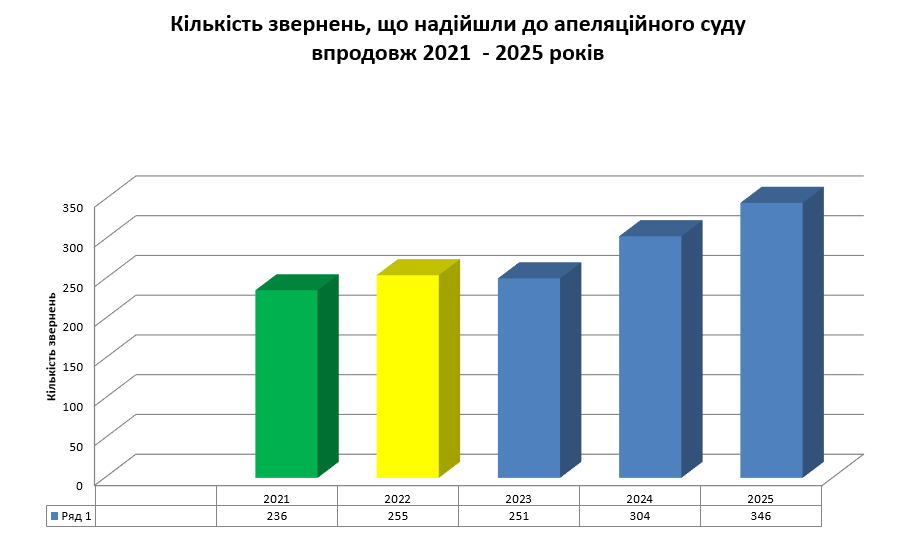 У 2025 році у порівнянні з минулими роками кількість звернень громадян, що надійшли до апеляційного суду, збільшилась –346 звернень