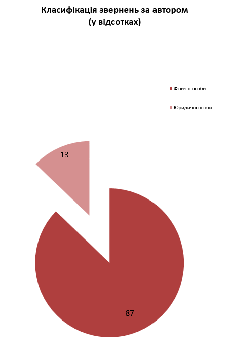 Із загальної кількості звернень –44 надійшло від юридичних осіб (додаток № 3).