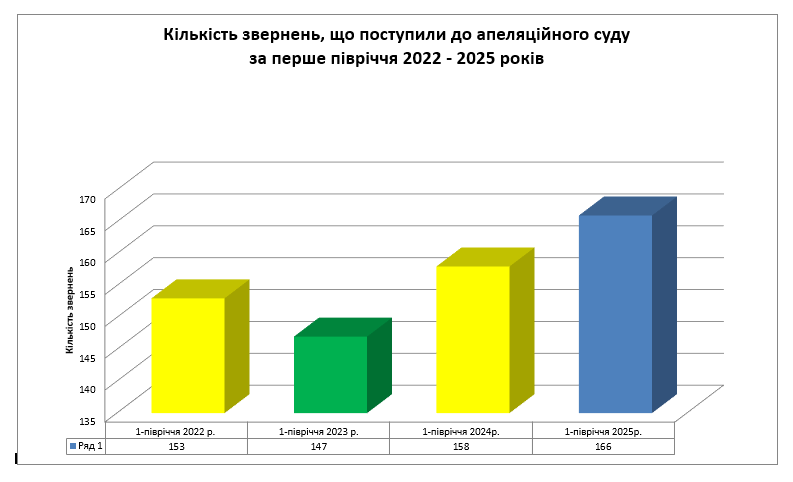 У першому півріччі 2025 року до Івано-Франківського апеляційного суду надійшло 166 звернень. Для порівняння: