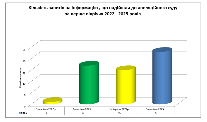 У першому півріччі 2025 року до апеляційного суду надійшло 23 запити на отримання публічної інформації. Для порівняння: