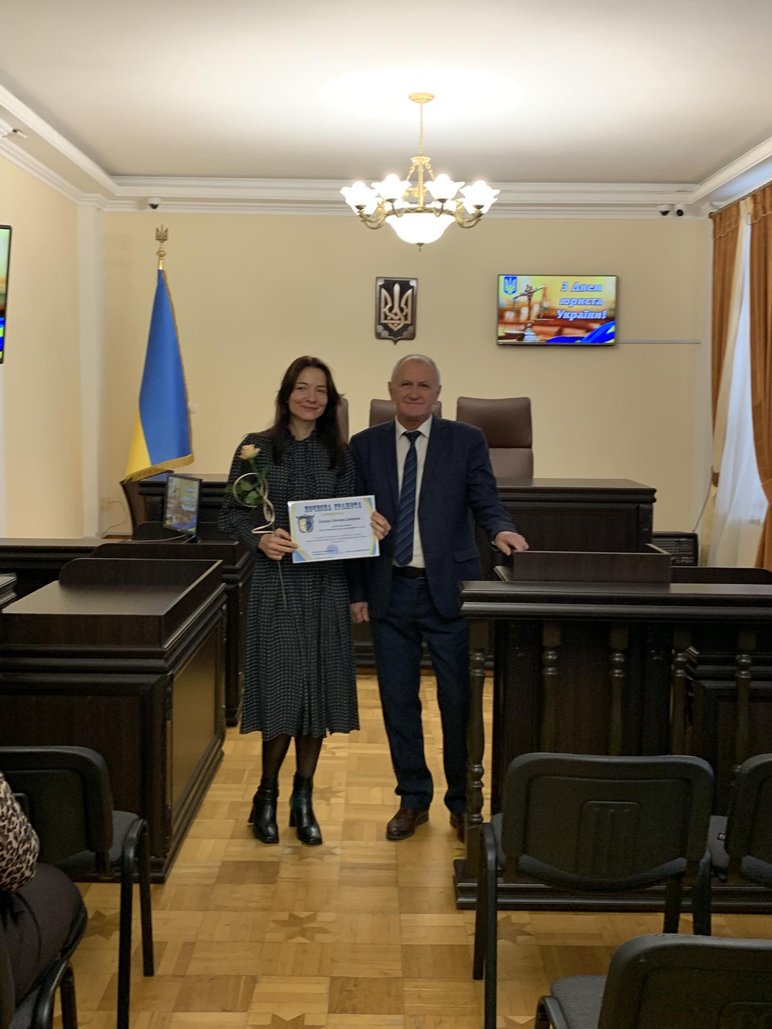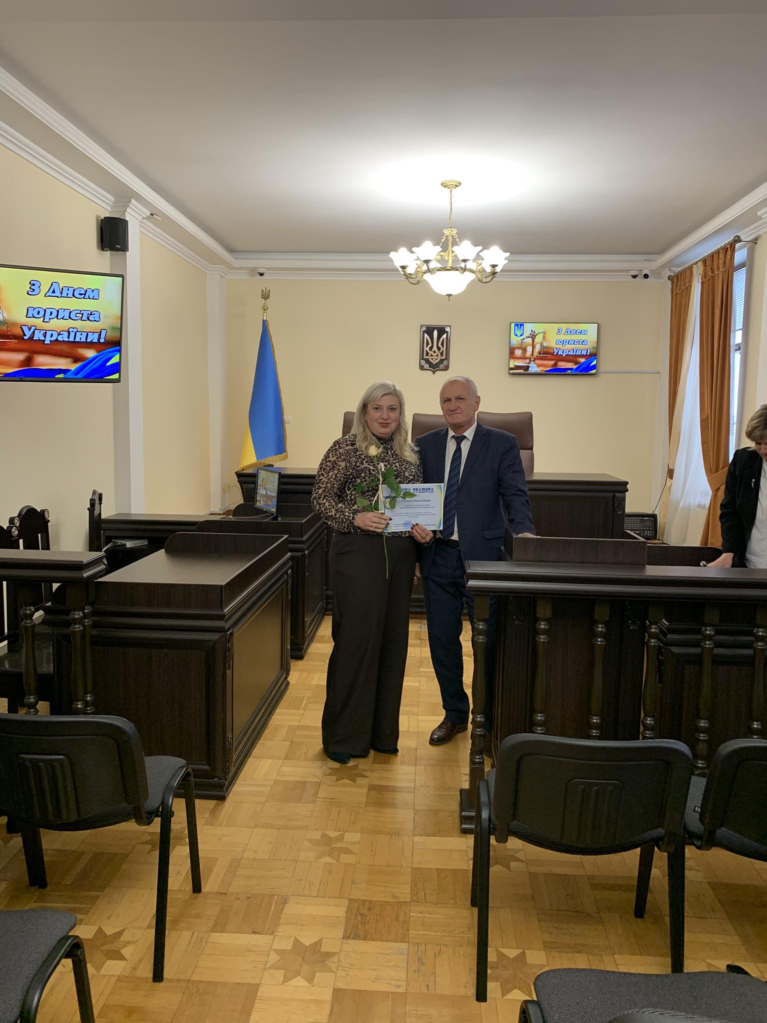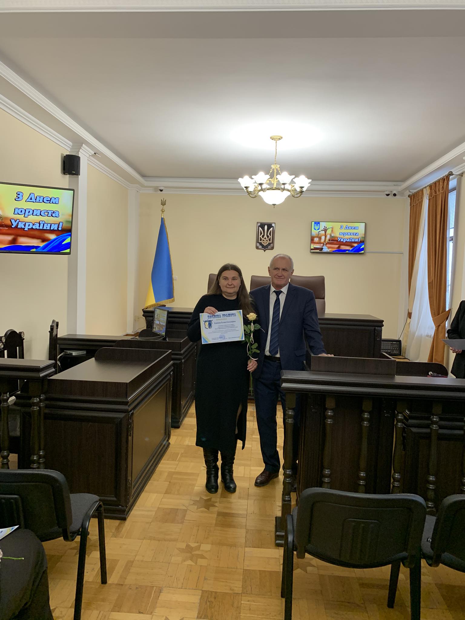 Голова суду з великою приємністю виконав почесну місію - вручив нагороди за сумлінне виконання службових обов’язків, високий професіоналізм та з нагоди професійного свята – Дня юриста: