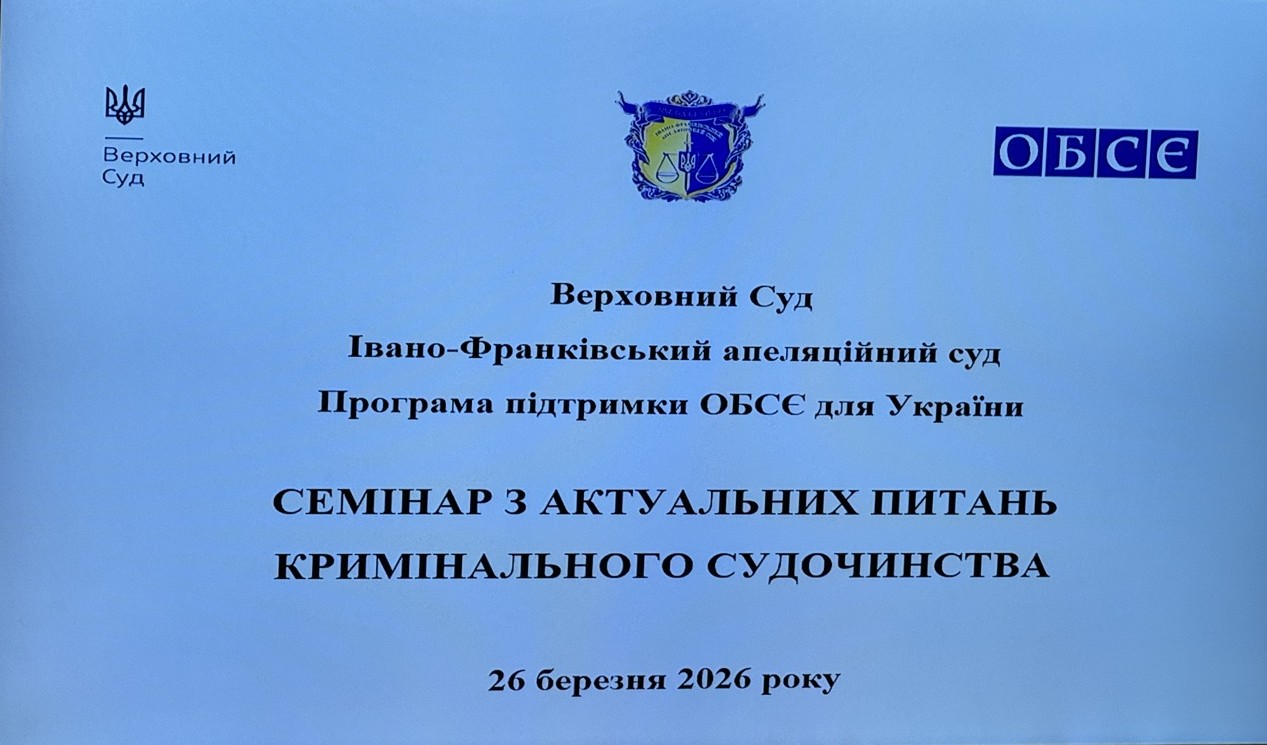 26 березня 2026 року в Івано-Франківському апеляційному суді відбувся семінар з актуальних питань кримінального судочинства за участю заступниці голови Касаційного кримінального суду у складі Верховного Суду Наталії Антонюк та судді Касаційного кримінального суду Віктора Остапука.